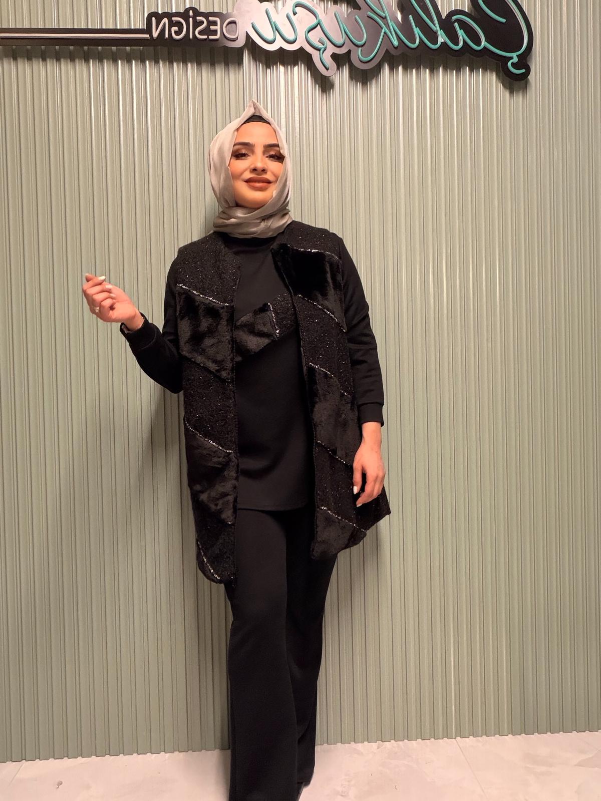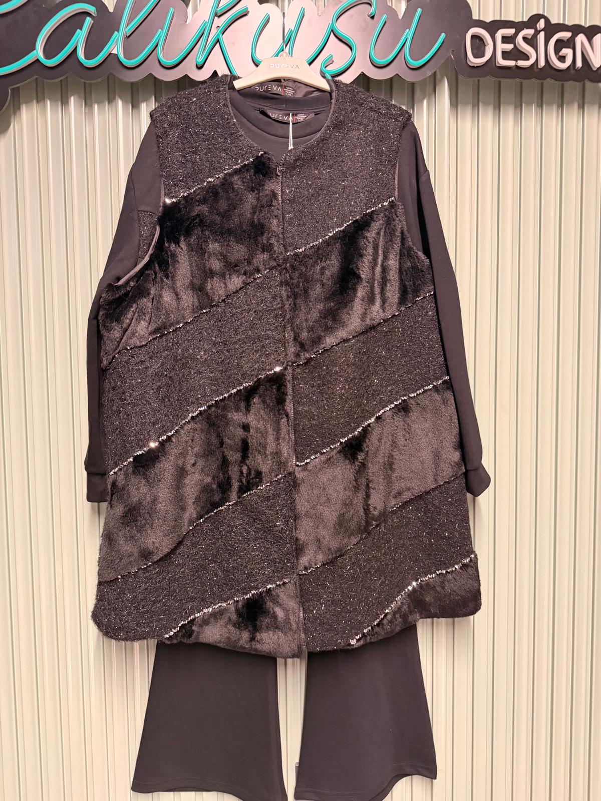 Angora Yelek Model Tunik Pantolon Üçlü Takım