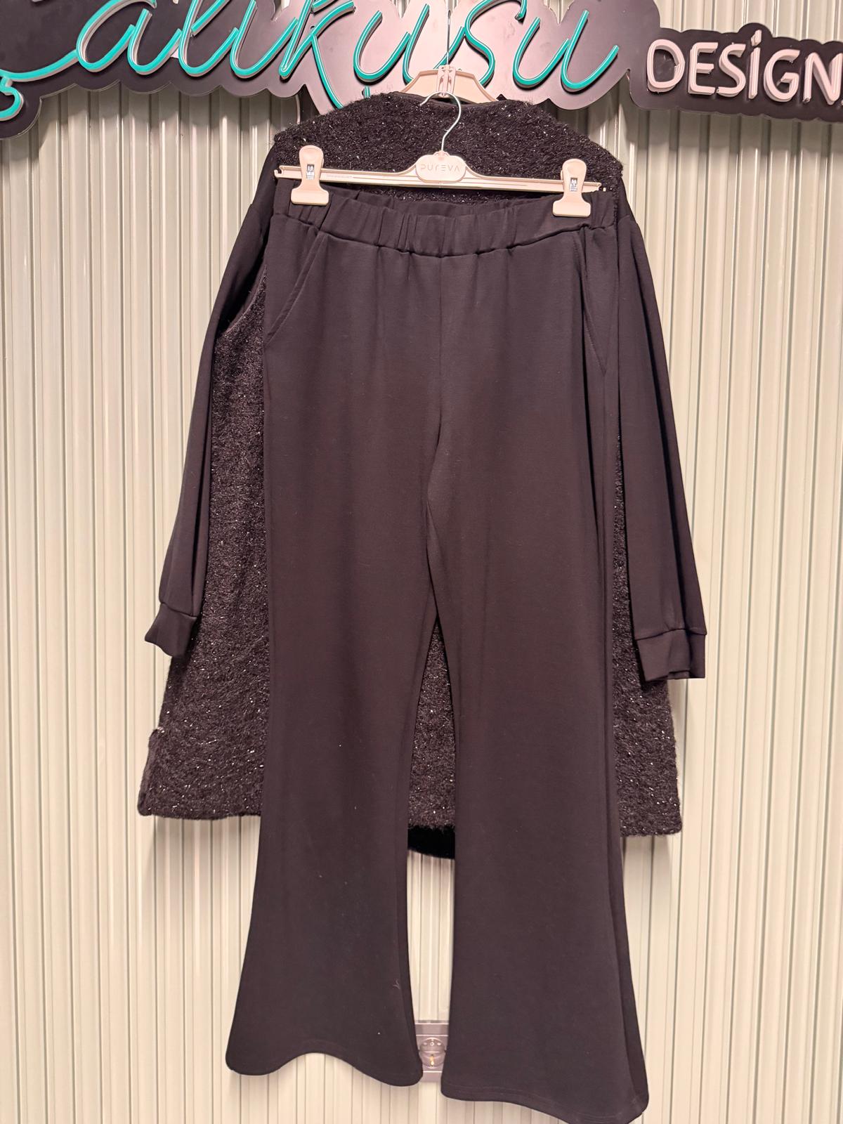 • Kumaş Yapısı: Angora görünümlü dokulu yelek, tunik ve pantolonda dökümlü kumaş