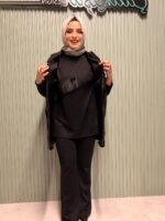 Şıklık ve konforu bir arada sunan Angora yelek model tunik pantolon üçlü takım, modern ve zarif tasarımıyla günlük kullanımdan özel davetlere kadar geniş bir kullanım alanı sunar.