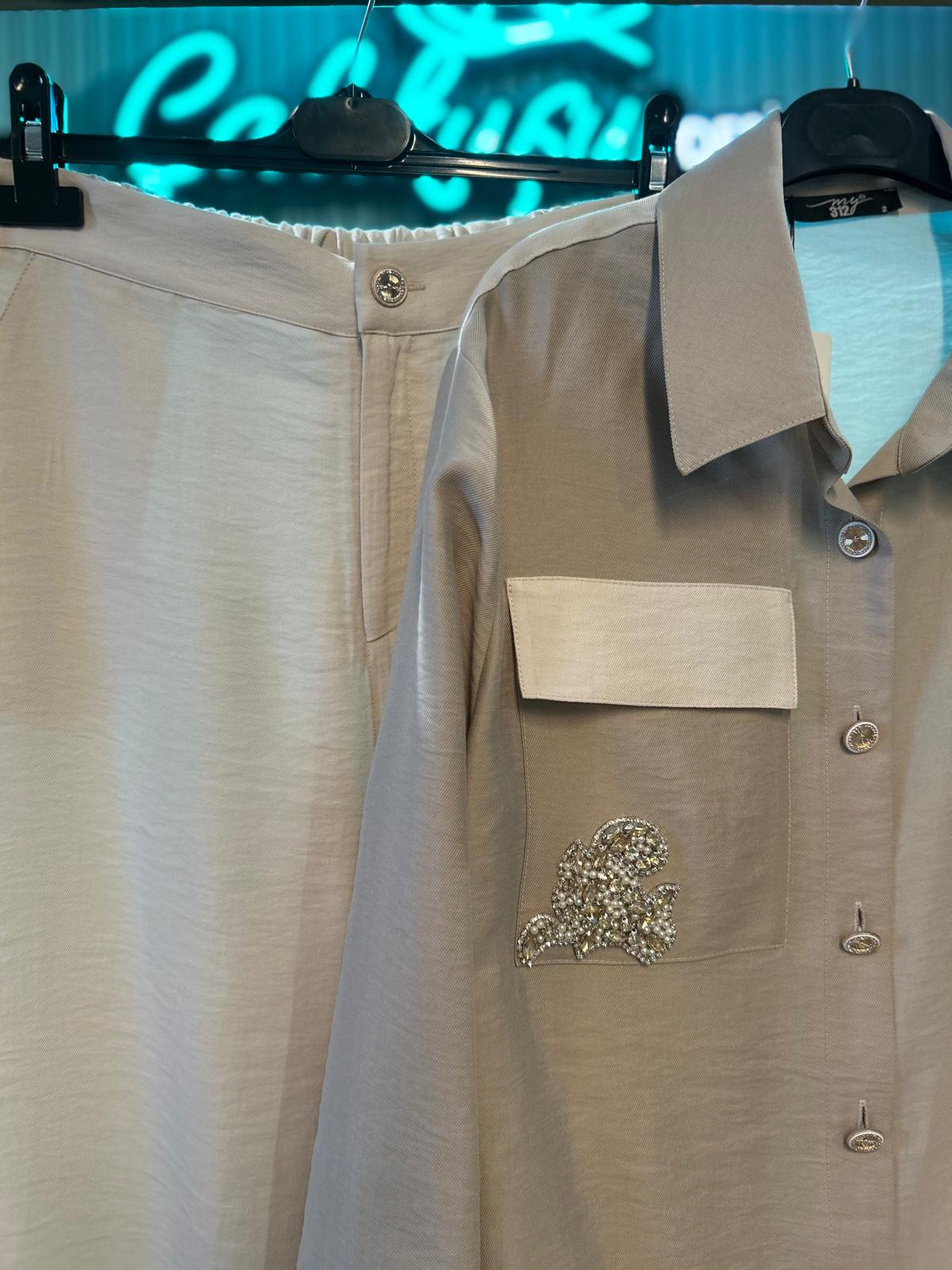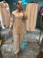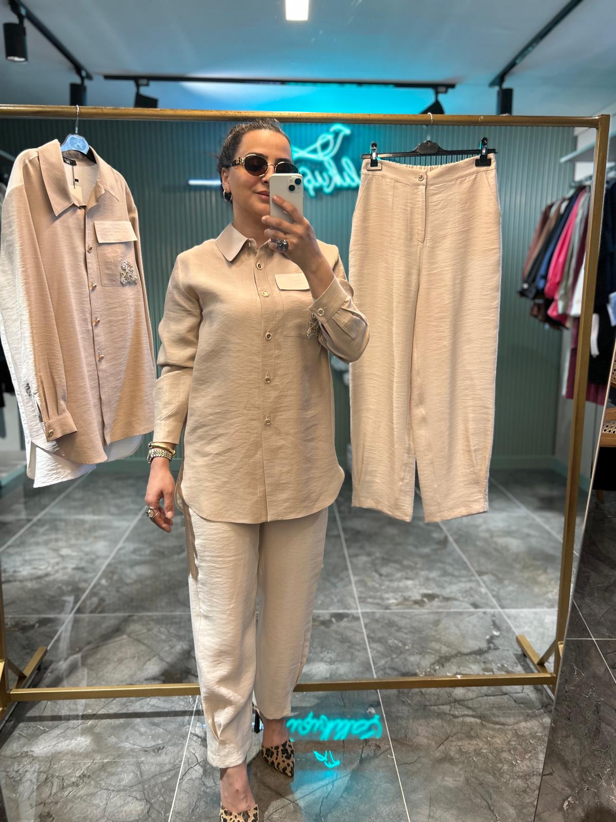 Şıklığı ve zarafeti bir araya getiren bu özel ikili takım, cep kısmındaki taş detayları ile sade şıklığı ön plana çıkarır.
