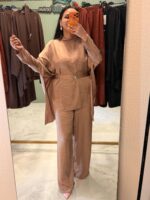 MY 312 markasına ait bu şık takım, zarif broş detayı ve modern kesimi ile dikkat çeker.