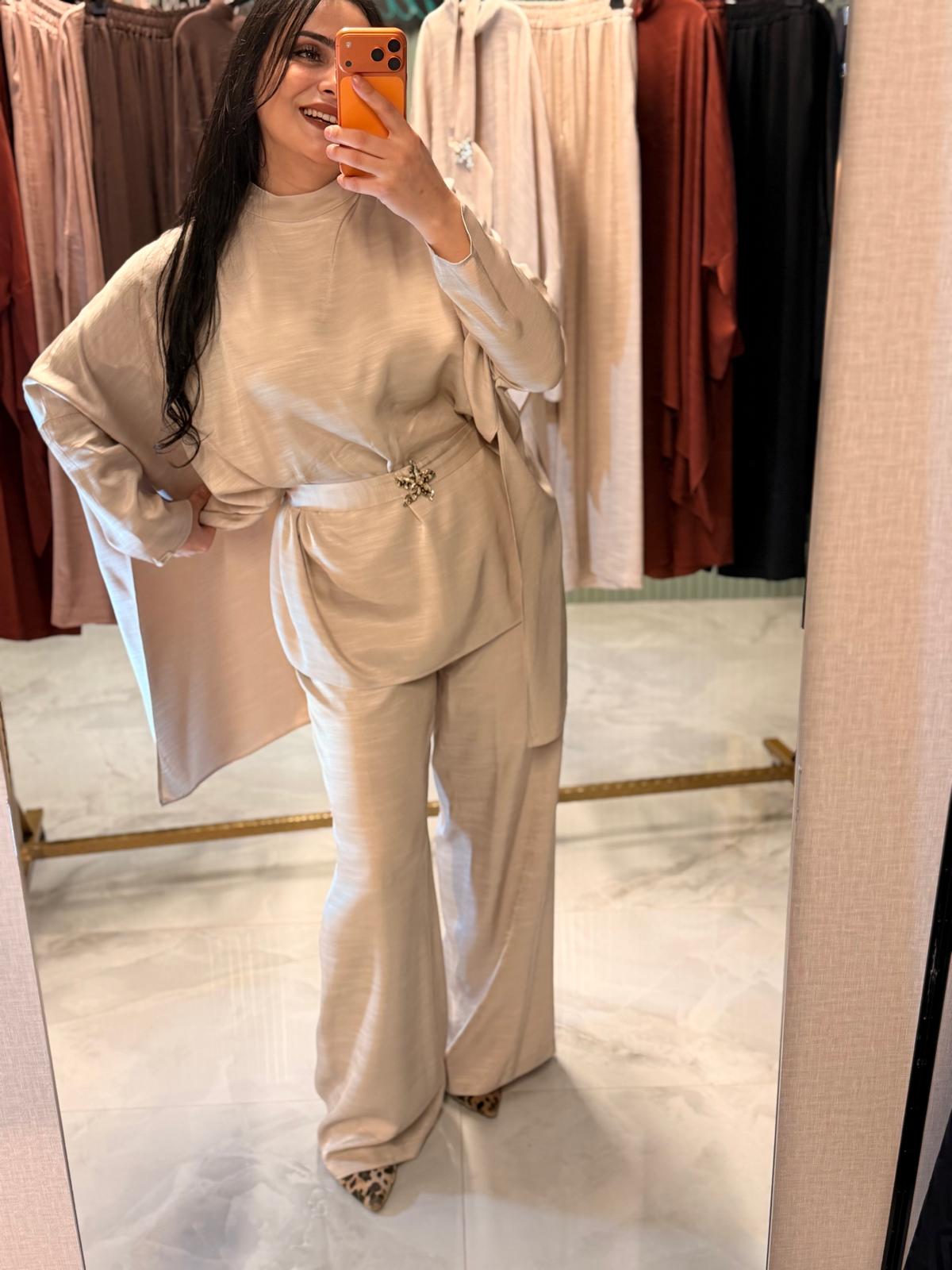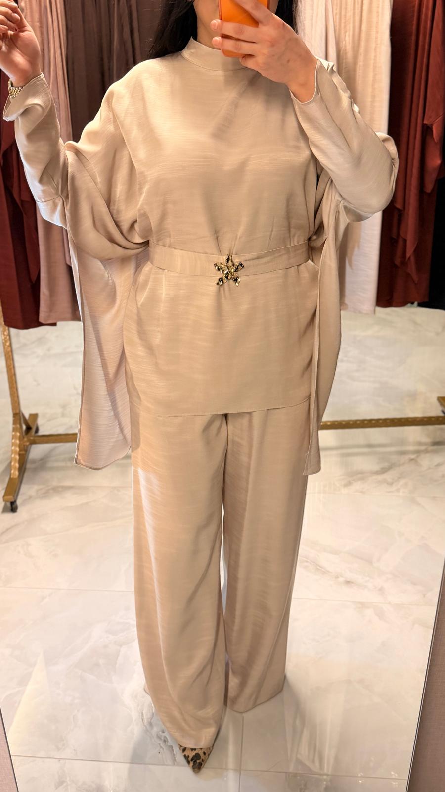 MY 312 markasına ait bu şık takım, zarif broş detayı ve modern kesimi ile dikkat çeker.