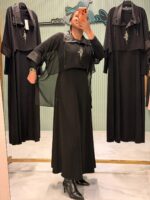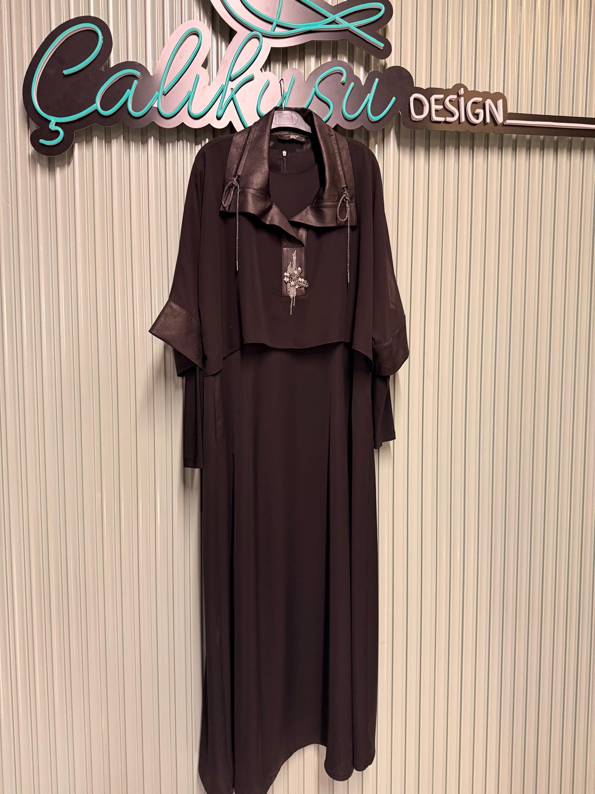 Üst kısmındaki şifon detaylı tasarımı elbiseye hareket katar, akıcı yapısı ile hem rahat hem de asil bir duruş sağlar.