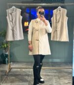 - Kruvaze Kürklü Yelek – Modern ve Zarif Dokunuş Tarzınızı sade ama güçlü detaylarla yansıtmak istiyorsanız, bu kruvaze kesim yelek tam size göre! Ön yüzeyde kullanılan yumuşacık kürk dokusu ve tok duruş sağlayan özel kumaşıyla hem sıcak tutar hem de şıklığınızdan ödün vermez.
