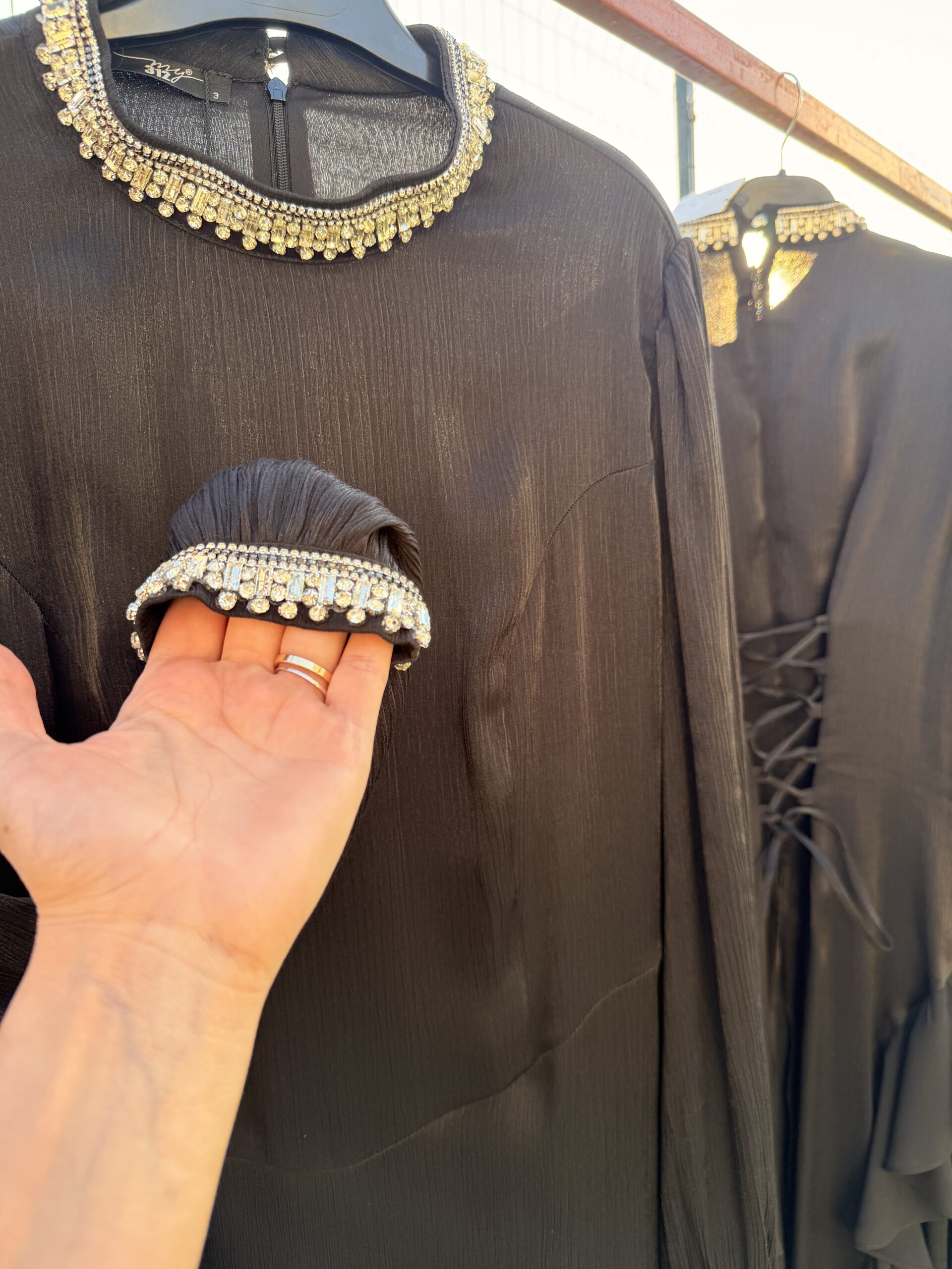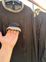 - Yaka ve manşetlerde taş işlemeli özel detay